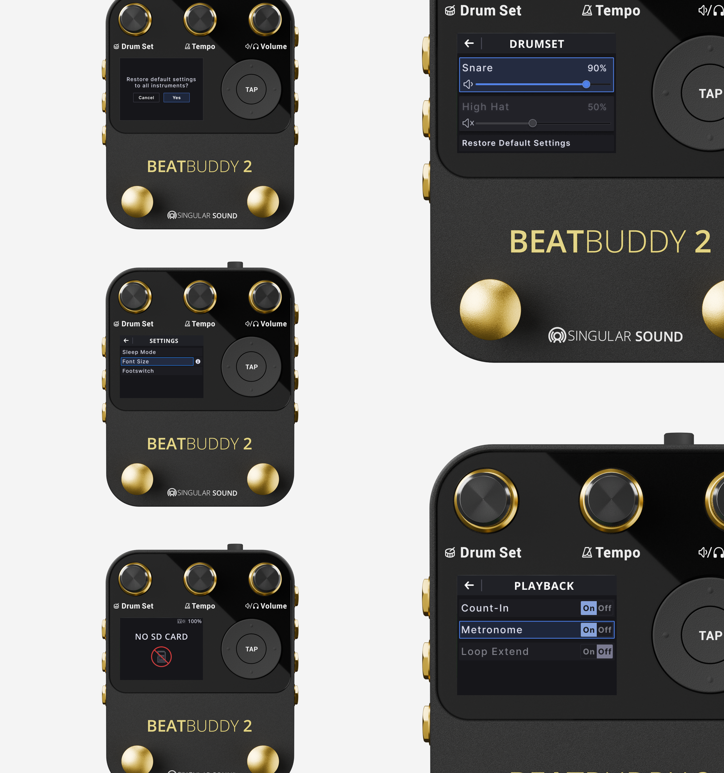 I was tasked with reimagining the full experience—optimizing clarity, speed, and usability for both novice and expert players. This included designing Dark Mode for the BeatBuddy Manager (BBMO) software and enhancing the pedal interface to allow musicians to: